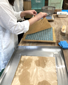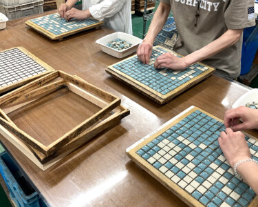 「ショールームの素敵なタイルの数々に心躍りました。工場で貼り子のシート加工は実際に体験してみると難しかったです。