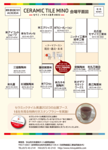 会場は、東京ビッグサイト東展示場。毎年、最も広い面積を占めている「多治見市美濃焼タイル振興協議会」の一社として出展します。
