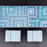 丸万ではオーシャンブルーをミックスしたタイルテーブルを制作しました。